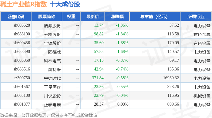 稀土产业链R(489013)指数十大成份股详情如下: