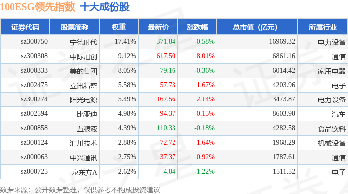 近10日内100ESG领先(970030)指数成份股做了调整,新纳入了5只股票,剔除了5只股票。
