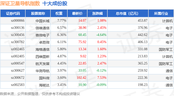 深证卫星导航(970050)指数十大成份股详情如下: