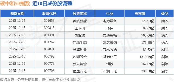 近10日内碳中和50(980021)指数成份股做了调整,新纳入了4只股票,剔除了4只股票。