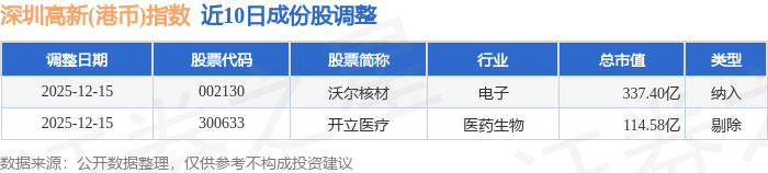近10日内深圳高新(港币)(980039)指数成份股做了调整,新纳入了1只股票,剔除了1只股票。