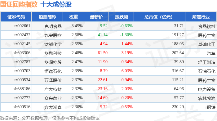 近10日内国证回购(980063)指数成份股做了调整,新纳入了22只股票,剔除了22只股票。
