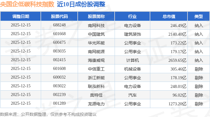 近10日内央国企低碳科技(980082)指数成份股做了调整,新纳入了5只股票,剔除了5只股票。