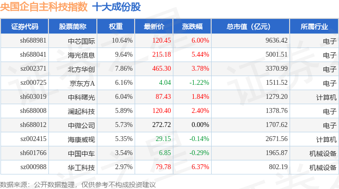 近10日内央国企自主科技(980083)指数成份股做了调整,新纳入了5只股票,剔除了5只股票。