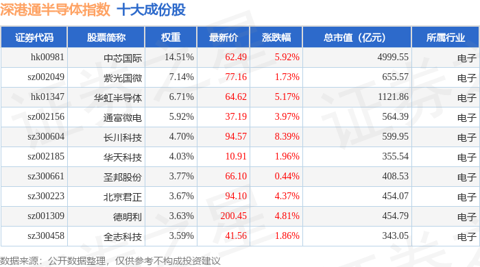 深港通半导体(983067)指数十大成份股详情如下: