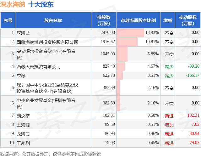 根据深水海纳2025年三季报公布的十大股东详情如下: