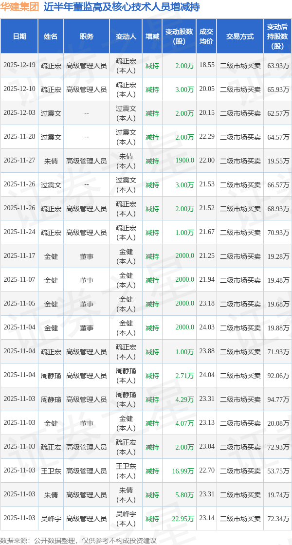 华建集团近半年内的董监高及核心技术人员增减持详情如下: