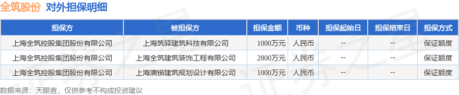 全筑股份12月19日披露3笔对外担保,被担保公司3家。对外担保明细如下表: