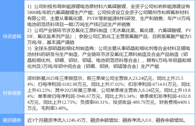 该股为锂电池,氟化工,有色金属概念热股,当日锂电池概念上涨2.3%,氟化工概念上涨2.23%,有色金属概念上涨0.49%。