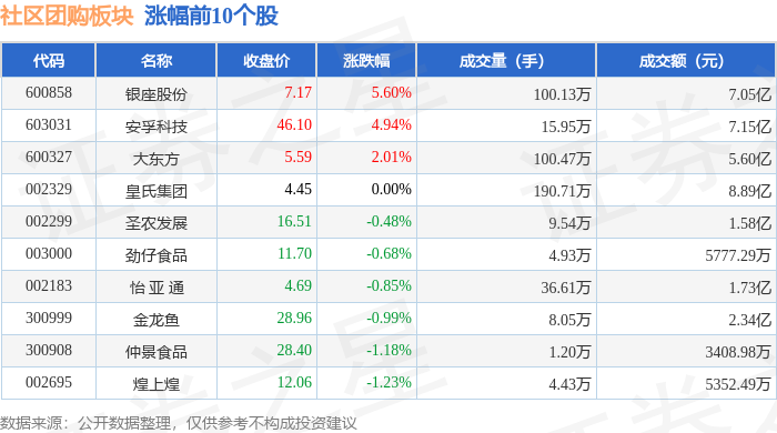 从资金流向上来看,当日社区团购板块主力资金净流出17.07亿元,游资资金净流入3.82亿元,散户资金净流入13.25亿元。社区团购板块个股资金流向见下表: