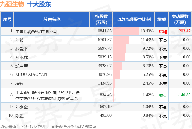 根据九强生物2025年三季报公布的十大股东详情如下: