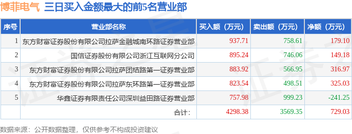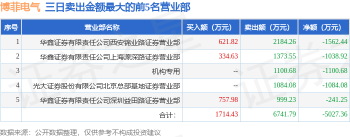 证券之星消息,沪深交易所2025年12月23日公布的交易公开信息显示,博菲电气(001255)因连续三个交易日内,跌幅偏离值累计达到20%的证券登上龙虎榜。此次是近5个交易日内第5次上榜。