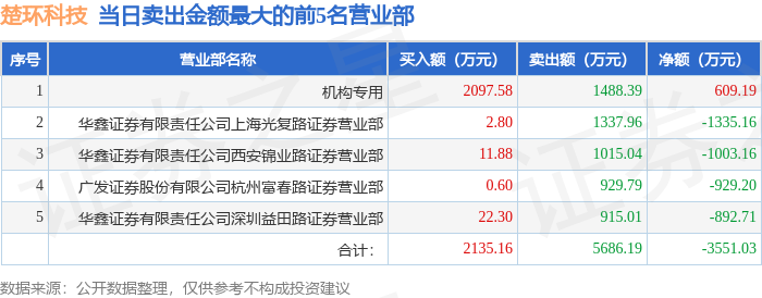 证券之星消息,沪深交易所2025年12月23日公布的交易公开信息显示,楚环科技(001336)因日振幅值达到15%的前5只证券登上龙虎榜。此次是近5个交易日内第2次上榜。