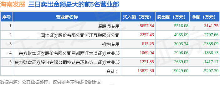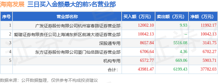 证券之星消息,沪深交易所2025年12月23日公布的交易公开信息显示,海南发展(002163)因连续三个交易日内,涨幅偏离值累计达到20%的证券登上龙虎榜。此次是近5个交易日内第1次上榜。