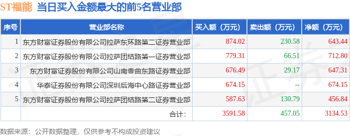 证券之星消息,沪深交易所2025年12月23日公布的交易公开信息显示,ST福能(300173)因日跌幅达到15%的前5只证券登上龙虎榜。此次是近5个交易日内第1次上榜。