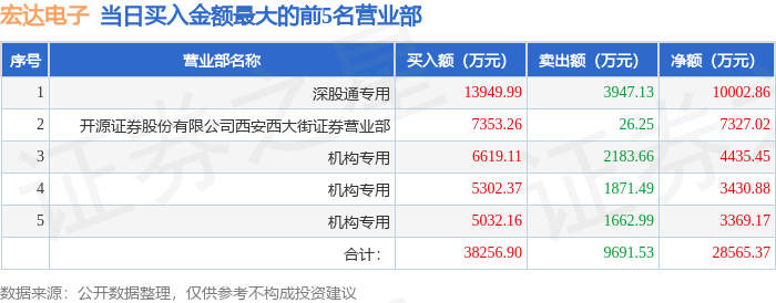 证券之星消息,沪深交易所2025年12月23日公布的交易公开信息显示,宏达电子(300726)因日涨幅达到15%的前5只证券登上龙虎榜。此次是近5个交易日内第1次上榜。