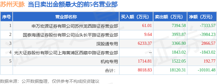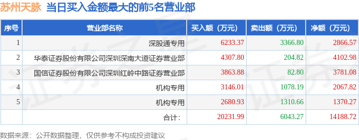 证券之星消息,沪深交易所2025年12月23日公布的交易公开信息显示,苏州天脉(301626)因日涨幅达到15%的前5只证券登上龙虎榜。此次是近5个交易日内第1次上榜。