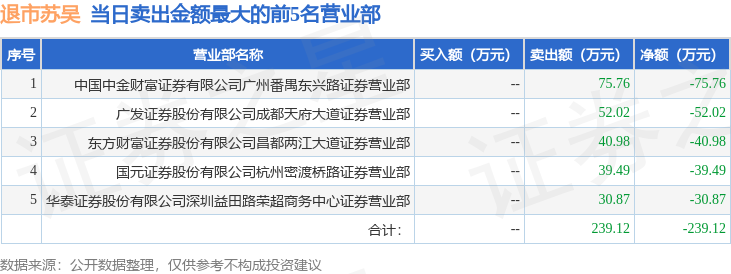 证券之星消息,沪深交易所2025年12月23日公布的交易公开信息显示,退市苏吴(600200)因退市整理的证券登上龙虎榜。此次是近5个交易日内第5次上榜。