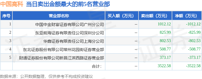 证券之星消息,沪深交易所2025年12月23日公布的交易公开信息显示,中国高科(600730)因有价格涨跌幅限制的日收盘价格跌幅偏离值达到7%的前五只证券登上龙虎榜。此次是近5个交易日内第2次上榜。