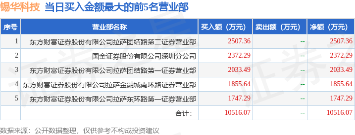 证券之星消息,沪深交易所2025年12月23日公布的交易公开信息显示,锡华科技(603248)因无价格涨跌幅限制的证券登上龙虎榜。此次是近5个交易日内第1次上榜。