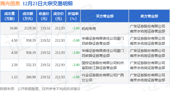 证券之星消息,12月23日海光信息发生大宗交易,交易数据如下:
