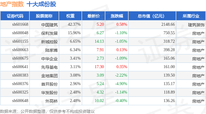 证券之星消息,12月23日,地产指数(000006)报收于4236.26点,跌0.46%,成交41.37亿元,换手率0.89%。当日该指数成份股中,上涨的有5家,中国建筑以0.58%的涨幅领涨,下跌的有18家,珠江股份以9.72%的跌幅领跌。