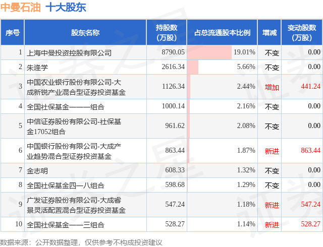 根据中曼石油2025年三季报公布的十大股东详情如下: