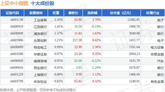 上证中小(000046)指数十大成份股详情如下: