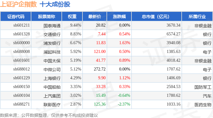 上证沪企(000062)指数十大成份股详情如下: