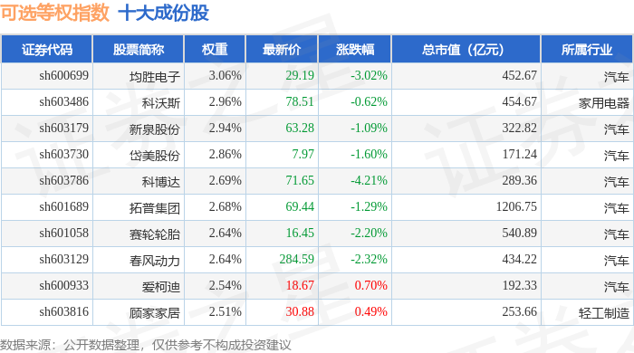 可选等权(000073)指数十大成份股详情如下:
