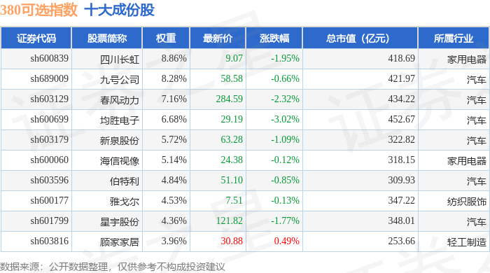 近10日内380可选(000107)指数成份股做了调整,新纳入了4只股票,剔除了7只股票。
