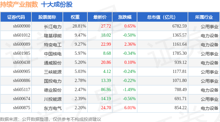 证券之星消息,12月23日,持续产业(000114)指数报收于1242.9点,涨0.44%,成交223.17亿元,换手率0.72%。当日该指数成份股中,上涨的有12家,东方电气以6.01%的涨幅领涨,下跌的有28家,山东出版以1.85%的跌幅领跌。