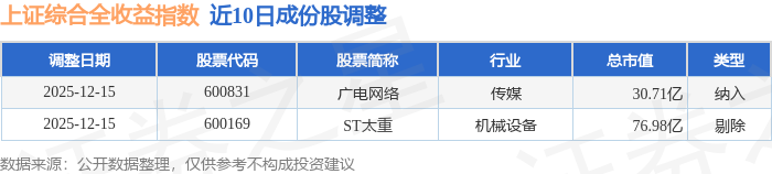 近10日内上证综合全收益(000888)指数成份股做了调整,新纳入了1只股票,剔除了1只股票。