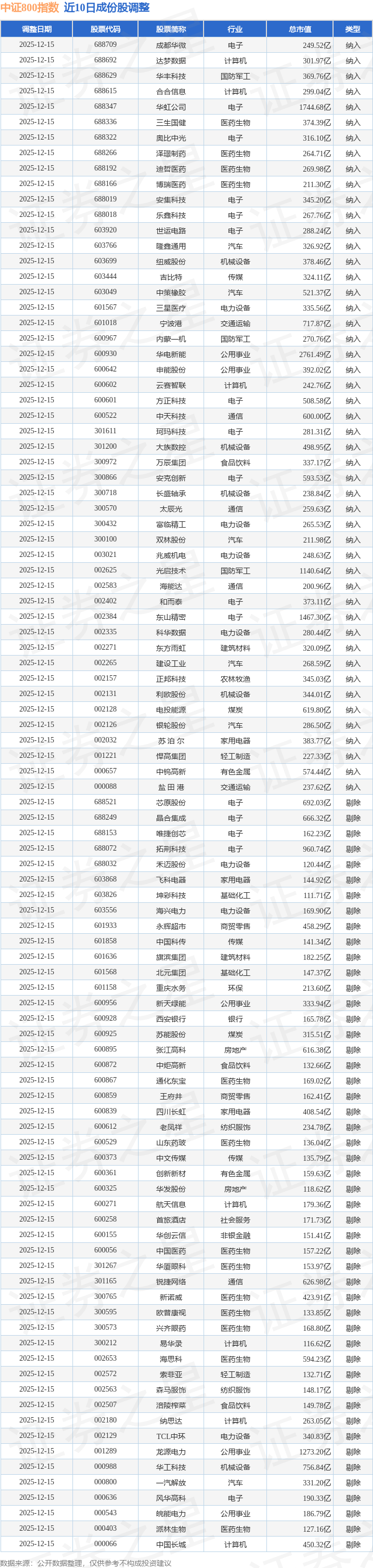 近10日内中证800(000906)指数成份股做了调整,新纳入了49只股票,剔除了49只股票。