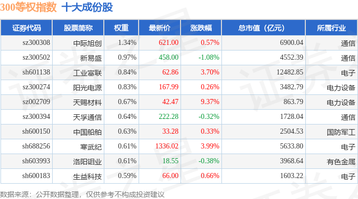 证券之星消息,12月23日,300等权(000984)指数报收于4615.6点,跌0.15%,成交4331.41亿元,换手率0.51%。当日该指数成份股中,上涨的有105家,天赐材料以9.37%的涨幅领涨,下跌的有184家,中国卫通以9.3%的跌幅领跌。