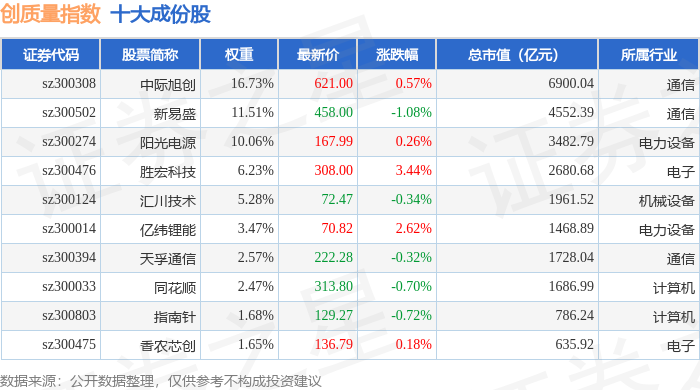 创质量(399269)指数十大成份股详情如下:
