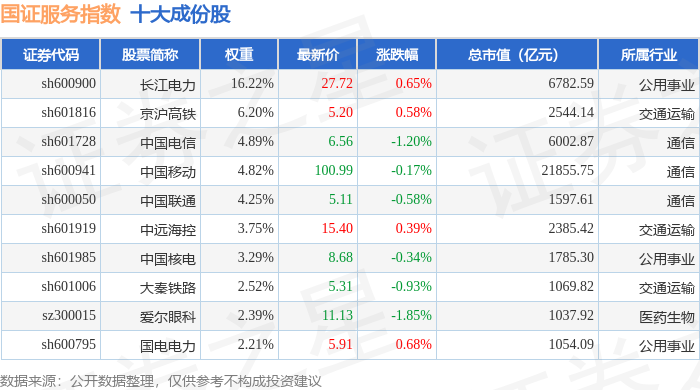 证券之星消息,12月23日,国证服务(399320)指数报收于2166.08点,跌0.19%,成交338.26亿元,换手率0.78%。当日该指数成份股中,上涨的有33家,安通控股以10.07%的涨幅领涨,下跌的有62家,海航控股以5.26%的跌幅领跌。