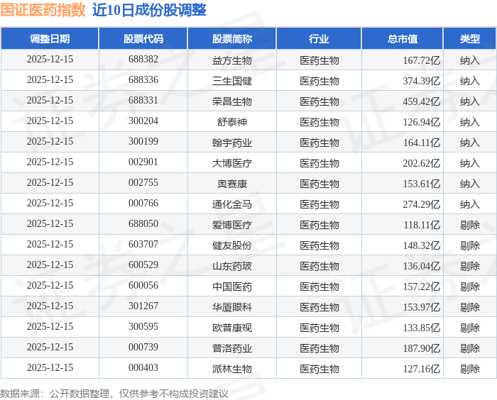 近10日内国证医药(399394)指数成份股做了调整,新纳入了8只股票,剔除了8只股票。