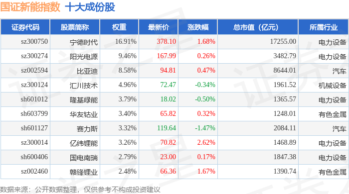 近10日内国证新能(399412)指数成份股做了调整,新纳入了1只股票,剔除了1只股票。