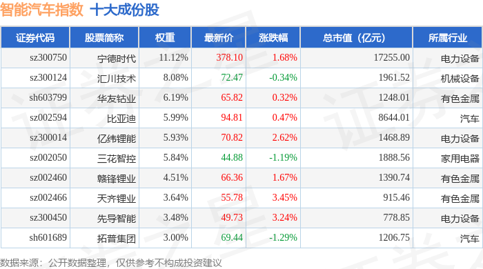 证券之星消息,12月23日,智能汽车(399432)指数报收于6568.98点,涨0.56%,成交800.8亿元,换手率2.94%。当日该指数成份股中,上涨的有18家,天华新能以8.48%的涨幅领涨,下跌的有31家,万集科技以5.92%的跌幅领跌。