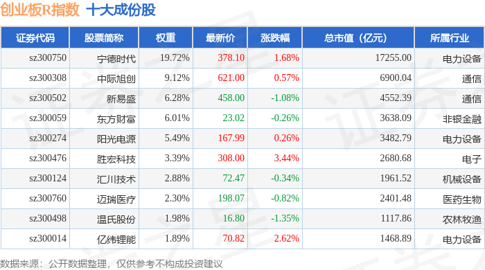 资金流向方面,创业板R(399606)指数成份股当日主力资金净流出合计38.11亿元,游资资金净流入合计11.18亿元,散户资金净流入合计26.93亿元。成份股资金流向详情见下表: