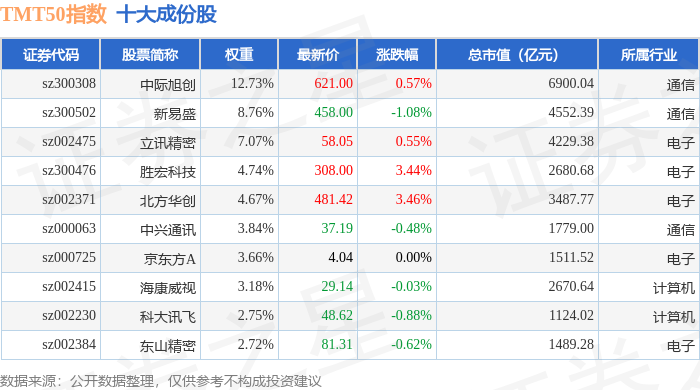近10日内TMT50(399610)指数成份股做了调整,新纳入了2只股票,剔除了2只股票。