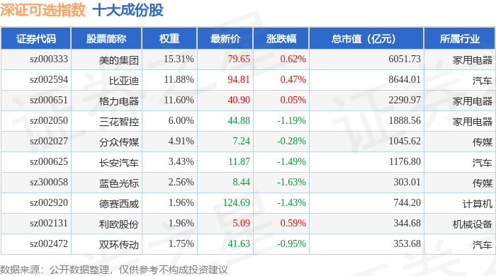 深证可选(399616)指数十大成份股详情如下: