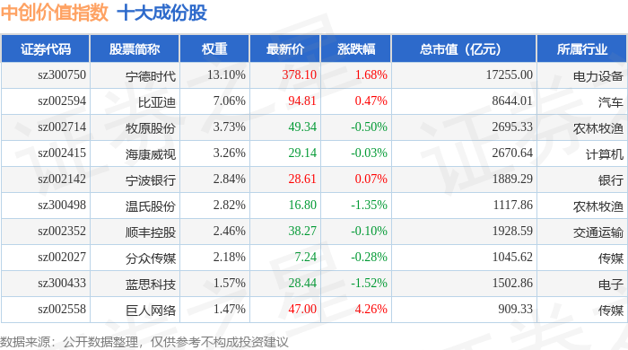 证券之星消息,12月23日,中创价值(399627)指数报收于2471.75点,涨0.38%,成交865.24亿元,换手率1.09%。当日该指数成份股中,上涨的有67家,万润股份以10.01%的涨幅领涨,下跌的有96家,航天智造以3.61%的跌幅领跌。