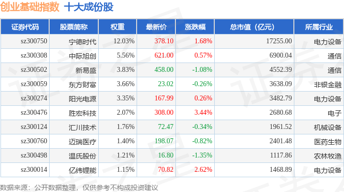 创业基础(399640)指数十大成份股详情如下: