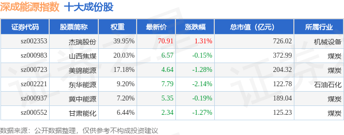证券之星消息,12月23日,深成能源(399680)指数报收于757.63点,涨0.13%,成交17.36亿元,换手率0.7%。当日该指数成份股中,上涨的有1家,杰瑞股份以1.31%的涨幅领涨,下跌的有5家,东华能源以2.14%的跌幅领跌。