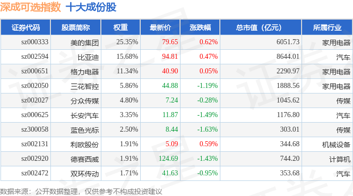 深成可选(399683)指数十大成份股详情如下: