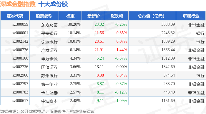 深成金融(399686)指数十大成份股详情如下: