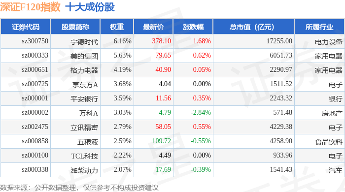 深证F120(399702)指数十大成份股详情如下:
