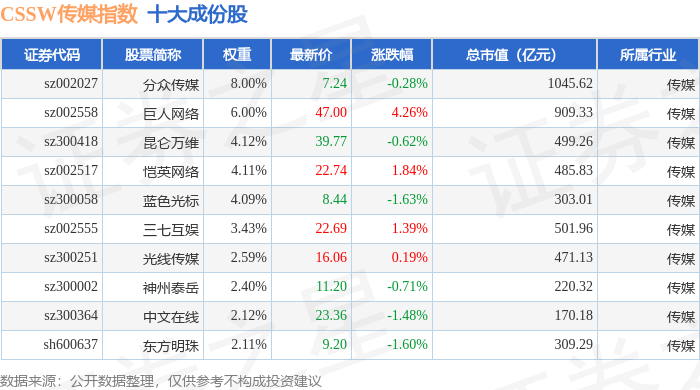 近10日内CSSW传媒(399810)指数成份股做了调整,新纳入了2只股票,剔除了3只股票。